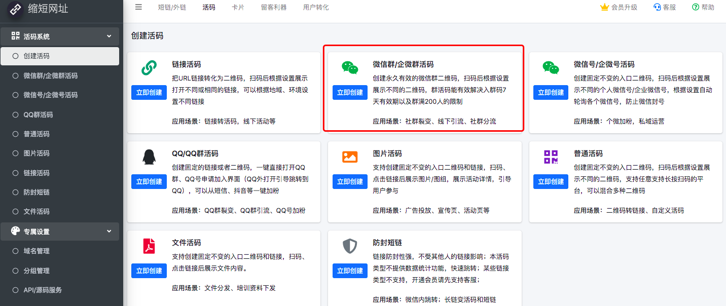 下载永久有效的活码,可以打印于线下张贴,或者发布于网络社交媒体等