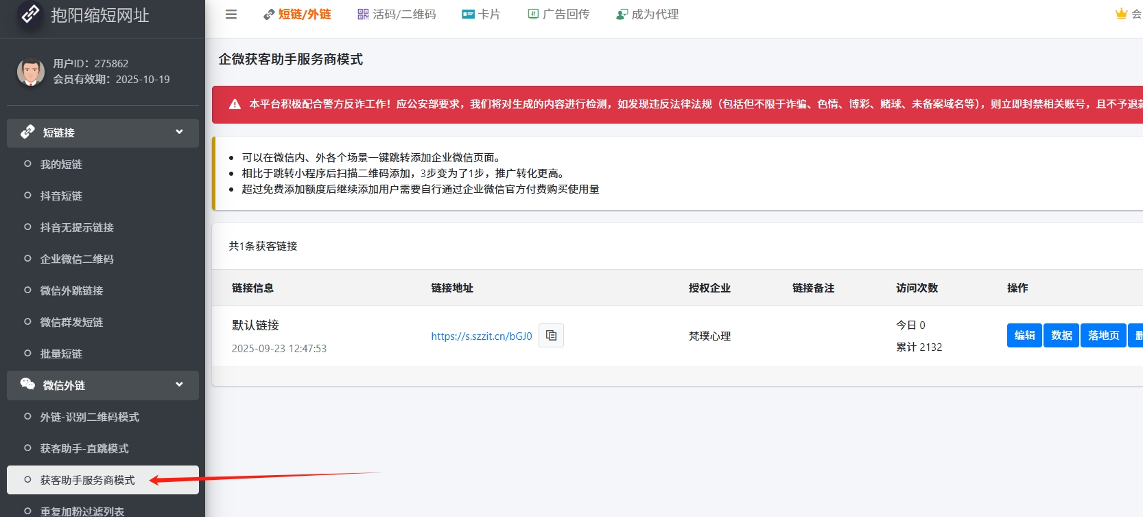 2. 请确认该条获客链接是否已经删除,或者授权已经取消。